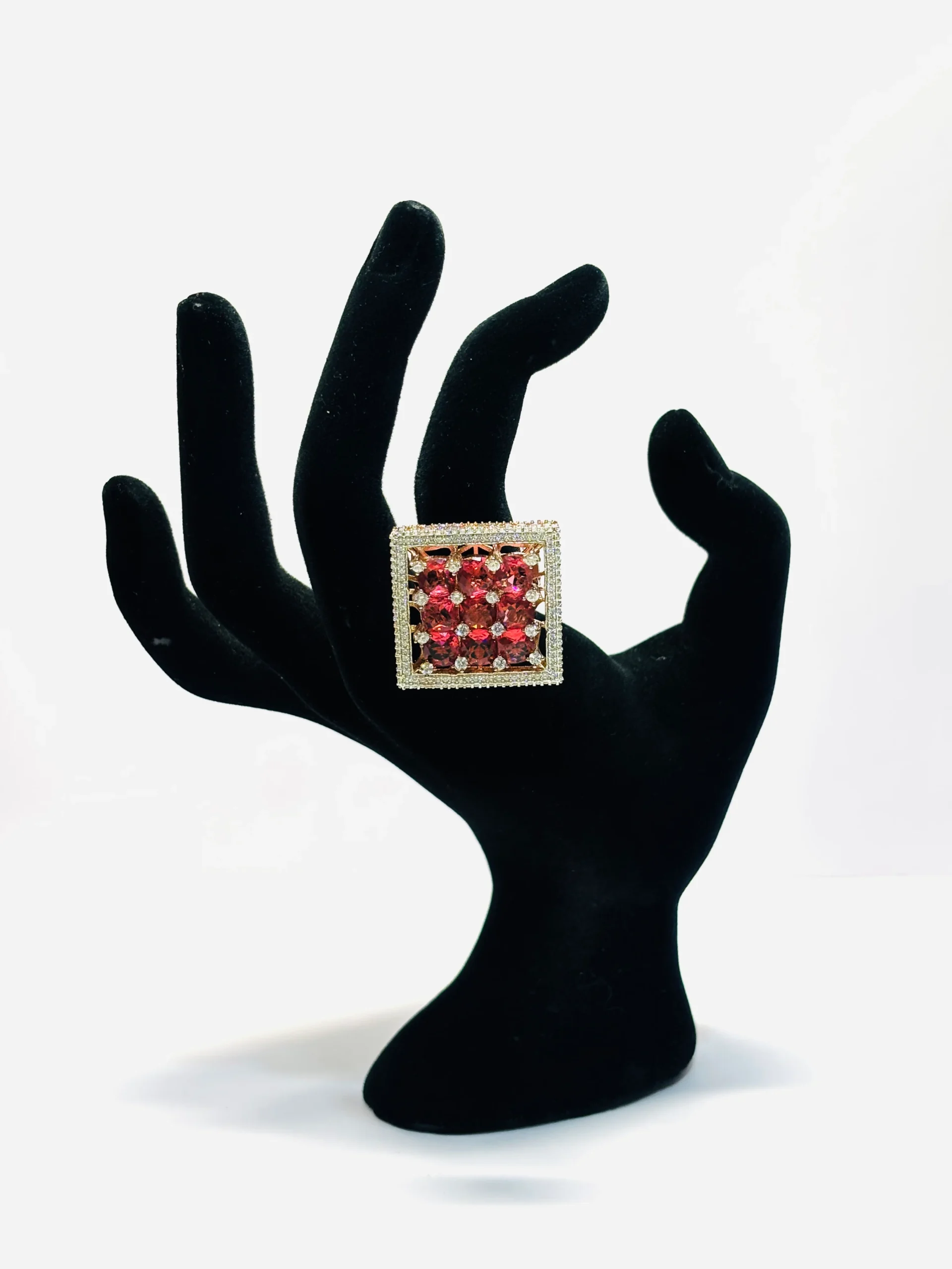 The structured geometric design adds a contemporary edge to traditional glamour, making it perfect for festive occasions, cocktail parties, or statement styling. With its rich tones and sparkling brilliance, this imitation ring is an instant showstopper.