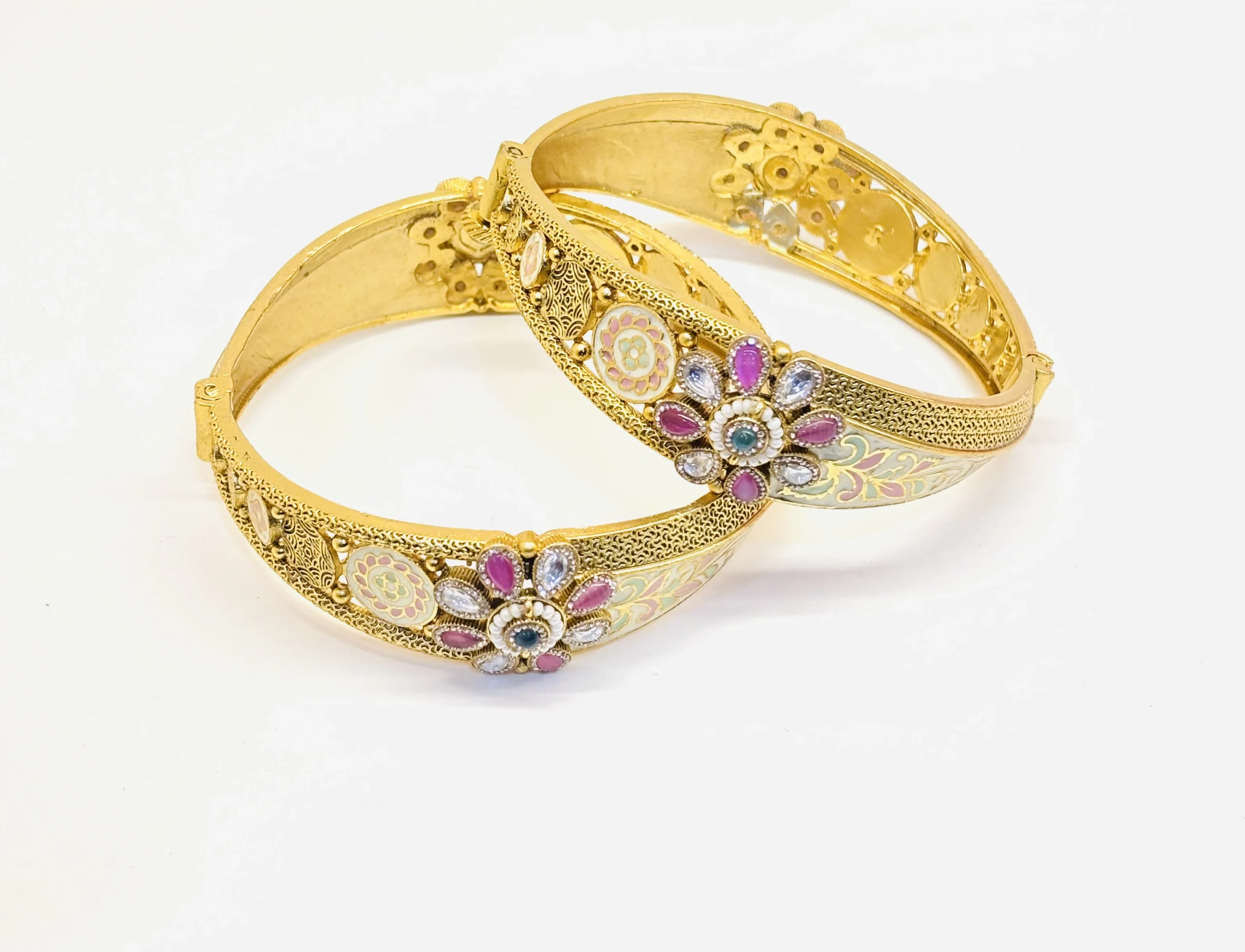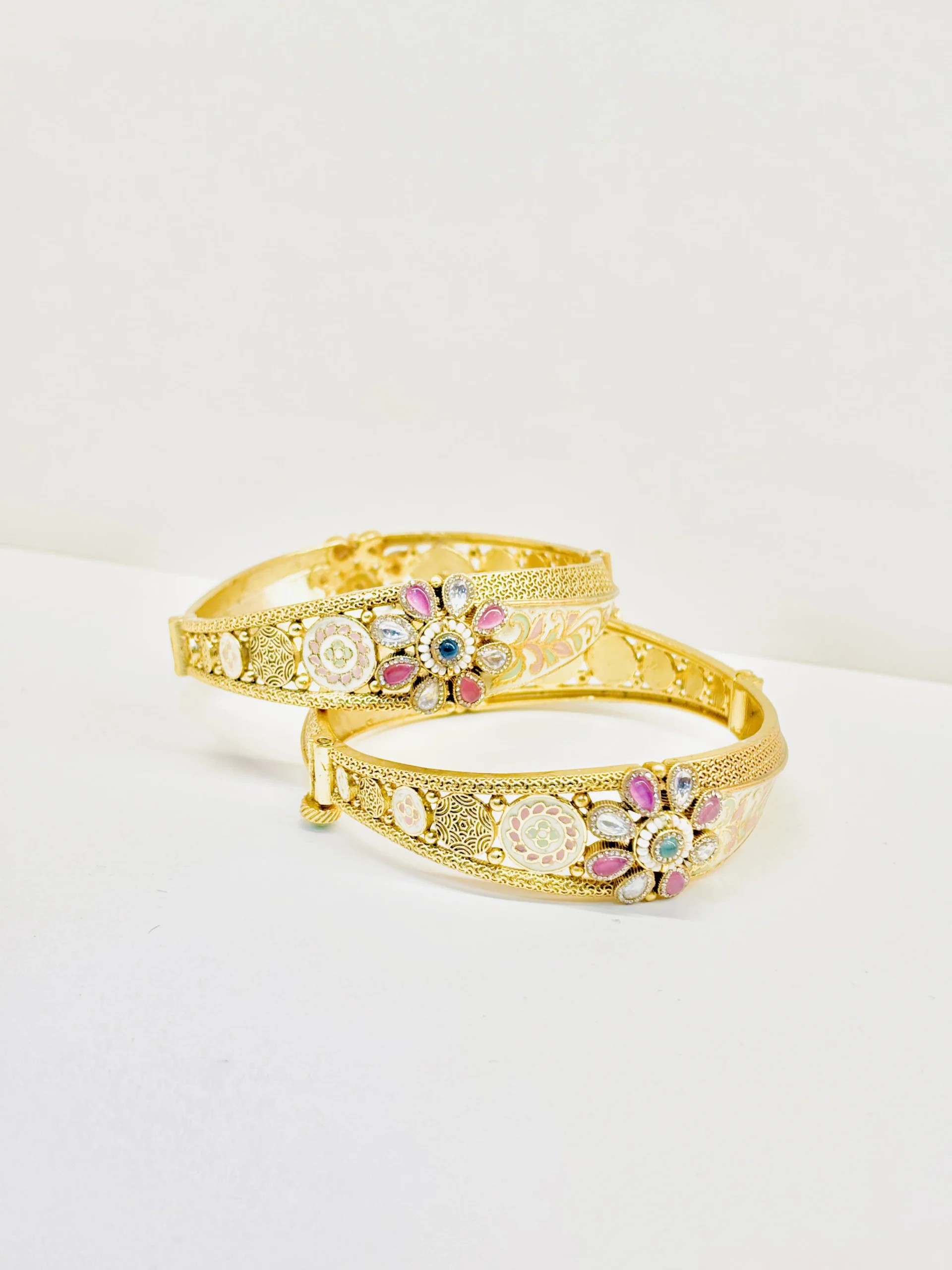 Be the first to review “VANADIUM-Gold-Plated Floral Bangles with Enamel & Stone Work” Cancel reply